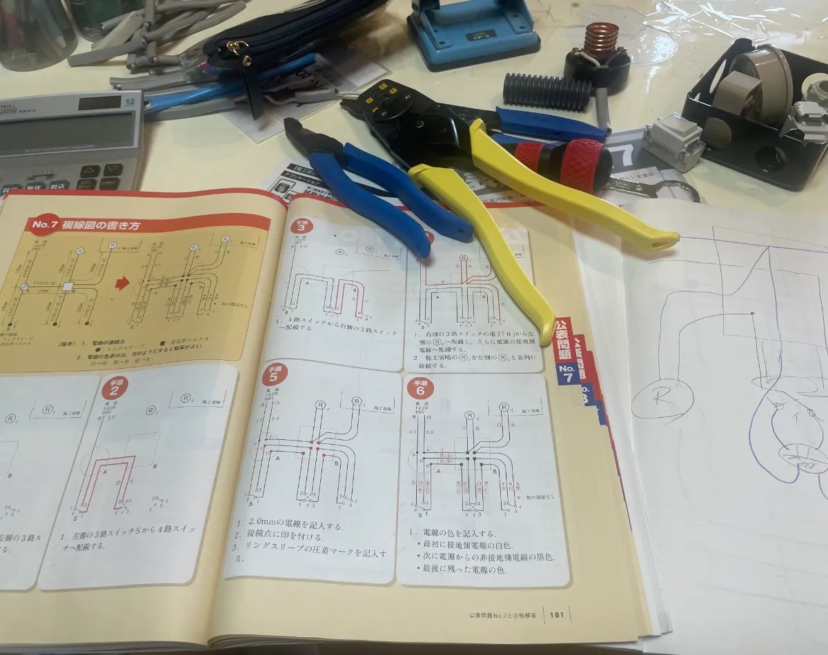 実は今回、私一人だけではなく、息子と一緒に宇都宮の自宅で机を並べて、二人三脚で挑戦してました。 仕事が終わってから二人で机に向かい、慣れない計算問題に頭を抱えたり、実技試験の練習で配線を競い合ったり…。 「どっちが落ちたら気まずいな」なんてプレッシャーもありましたが(笑)、お互いに励まし合ったおかげで、無事に親子そろって免状を手にすることができました。